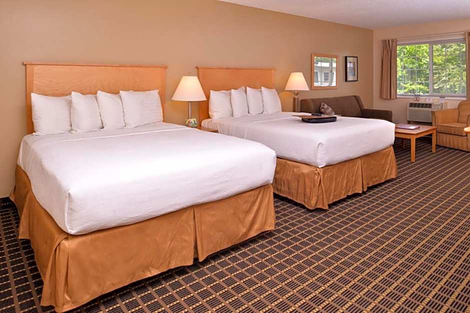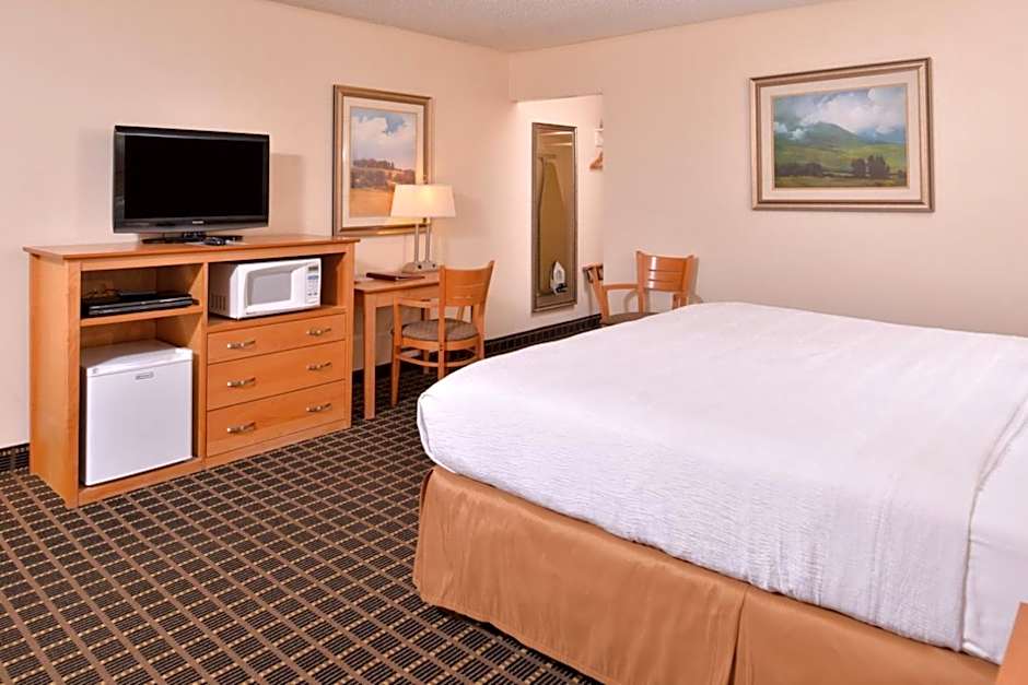 This spacious room features a coffee machine, a refrigerator, a microwave, a TV with a DVD player, and a separate bathroom with a vanity. A deluxe continental breakfast is included. Free movie rentals, free Wi-Fi access, ironing facilities and a hairdryer are also offered.